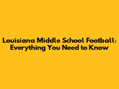 Louisiana Middle School Football: Everything You Need To Know