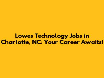Lowe's Tech Jobs In Charlotte, NC: Your Career Awaits!