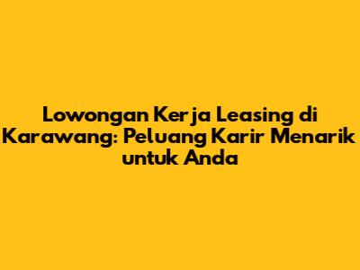 Lowongan Kerja Leasing Karawang Terbaru