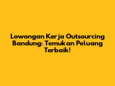 Lowongan Kerja Outsourcing Bandung: Temukan Peluang Terbaik!