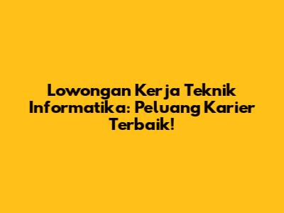 Lowongan Kerja Teknik Informatika: Peluang Karier Terbaik!