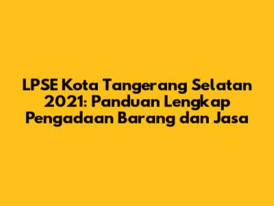LPSE Kota Tangerang Selatan 2021: Panduan Lengkap Pengadaan
