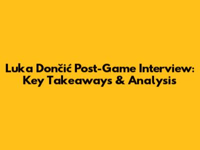 Luka Dončić Post-Game Interview: Key Takeaways & Analysis