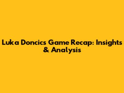 Luka Doncic's Game Recap: Insights & Analysis