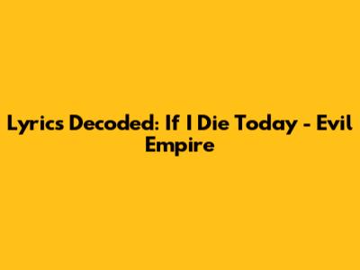 Lyrics Decoded: If I Die Today - Evil Empire