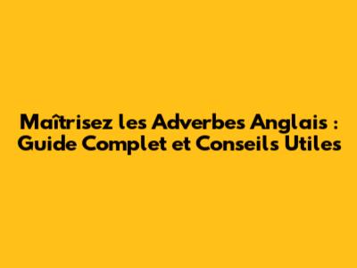 Maîtrisez Les Adverbes Anglais : Guide Complet Et Conseils Utiles