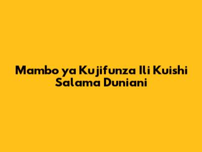 Mambo Ya Kujifunza Ili Kuishi Salama Duniani