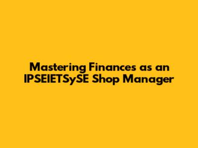 Mastering Finances As An IPSEIETSySE Shop Manager