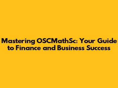 Mastering OSCMathSc: Your Guide To Finance And Business Success