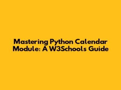 Mastering Python Calendar Module: A W3Schools Guide