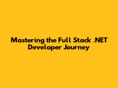 Mastering The Full Stack .NET Developer Journey