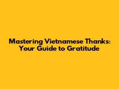 Mastering Vietnamese Thanks: Your Guide To Gratitude