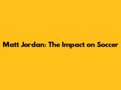 Matt Jordan: The Impact On Soccer