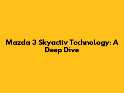 Mazda 3 Skyactiv Technology: A Deep Dive