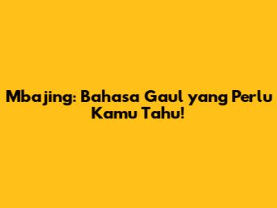 Mbajing: Bahasa Gaul Yang Perlu Kamu Tahu!