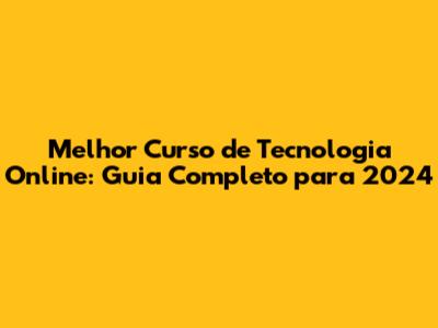 Melhor Curso De Tecnologia Online: Guia Completo Para 2024