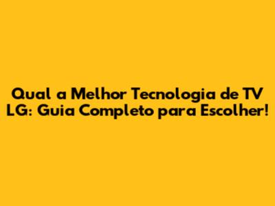 Melhor Tecnologia De TV LG: Guia Completo Para Escolher!