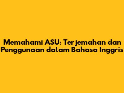 Guys, mari kita bahas tentang satu kata yang cukup menarik perhatian, yaitu "ASU". Mungkin kalian sering mendengar kata ini dalam percakapan sehari-hari, terutama di Indonesia. Tapi, apa sih sebenarnya arti "ASU" itu, dan bagaimana kita menerjemahkannya ke dalam Bahasa Inggris? Nah, di artikel ini, kita akan kupas tuntas tentang "ASU", mulai dari makna aslinya, terjemahannya dalam Bahasa Inggris, hingga bagaimana kata ini digunakan dalam konteks yang berbeda.