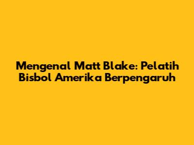 Mengenal Matt Blake: Pelatih Bisbol Amerika Berpengaruh