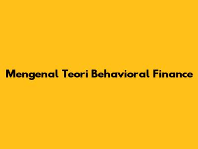 Mengenal Teori Behavioral Finance