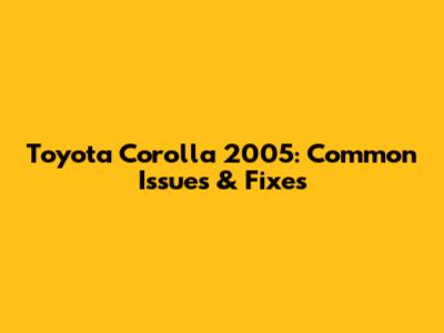 Toyota Corolla 2005: Common Issues & Fixes