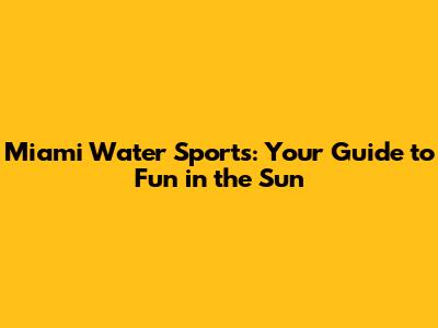 Miami Water Sports: Your Guide To Fun In The Sun