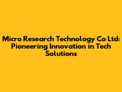 Hey guys! Ever wondered about the brains behind some seriously cool tech innovations? Let's dive into Micro Research Technology Co Ltd, a company that's been making waves in the tech world. This isn't just another tech company; it's a hub of innovation, driving advancements across various sectors. We're going to explore what makes Micro Research Technology stand out, their key contributions, and why they're a name to watch in the ever-evolving technology landscape.
