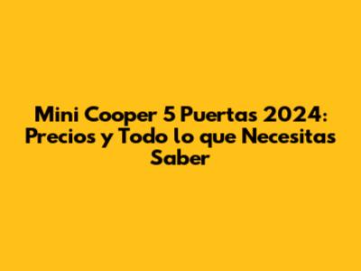 ¡Hola a todos los entusiastas de los coches! Si estás buscando un coche con estilo, personalidad y practicidad, el Mini Cooper 5 Puertas 2024 podría ser la opción perfecta para ti. En este artículo, vamos a sumergirnos en todo lo que necesitas saber sobre este icónico vehículo, desde sus precios hasta sus características más destacadas. Así que, ¡abróchate el cinturón y prepárate para descubrir todo sobre el Mini Cooper 5 Puertas 2024!