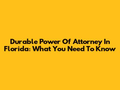 Durable Power Of Attorney In Florida: What You Need To Know