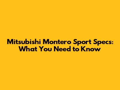 Mitsubishi Montero Sport Specs: What You Need To Know