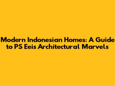 Modern Indonesian Homes: A Guide To PS Eei's Architectural Marvels