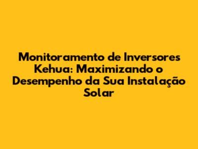 Configurando o Monitoramento de Inversores Kehua: Um Guia Passo a Passo