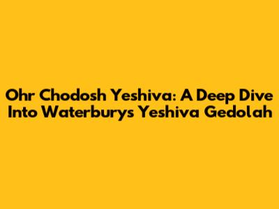 Ohr Chodosh Yeshiva: A Deep Dive Into Waterbury's Yeshiva Gedolah