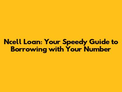 Ncell Loan: Quick Guide To Borrowing With Your Number