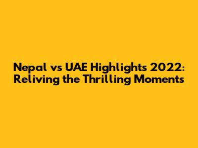 The Nepal vs UAE clashes of 2022 delivered some unforgettable moments for cricket fans! This article dives deep into the highlights, offering a comprehensive recap of the matches, key performances, and nail-biting finishes that defined this rivalry in 2022. Whether you're a die-hard cricket enthusiast or simply looking to relive the excitement, get ready to explore the best moments from these thrilling encounters. We'll break down the key matches, analyze the pivotal plays, and celebrate the standout players who made these contests so captivating. So, grab your favorite beverage, settle in, and let's journey back to the heart-pounding action of Nepal vs UAE in 2022!
