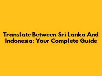 Translate Between Sri Lanka And Indonesia: Your Complete Guide
