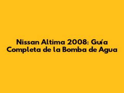 Nissan Altima 2008: Guía Completa De La Bomba De Agua