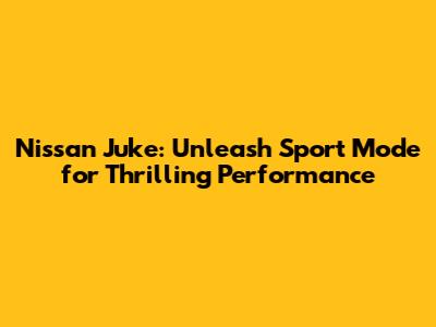 Hey guys! Ever wondered what that Sport Mode button in your Nissan Juke does? Well, buckle up because we're about to dive into everything you need to know about unleashing the full potential of your Juke with Sport Mode. Let's get started!