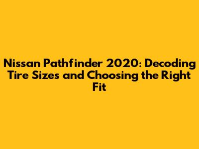 Hey everyone! If you're cruising around in a Nissan Pathfinder 2020, you've probably wondered about your tires at some point. Maybe you're looking for replacements, planning a road trip, or just curious about what those numbers and letters on the sidewall actually mean. Well, you're in the right place! This guide is your go-to resource for understanding Nissan Pathfinder 2020 tire sizes, deciphering tire codes, and making informed decisions about your vehicle's footwear.