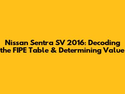 Hey guys! So, you're curious about the Nissan Sentra SV 2016 and its value according to the FIPE table, right? Well, you've come to the right place! We're diving deep into everything you need to know about the FIPE table and how it applies to your potential purchase or sale of a 2016 Sentra SV. Buckle up, because we're about to embark on a journey through the world of car valuations. This article will be your go-to guide, helping you understand the intricacies of the FIPE table, what it means for your Nissan Sentra SV 2016, and how to use this information to your advantage. Whether you're a seasoned car enthusiast or a first-time buyer, this guide is designed to provide you with valuable insights and practical knowledge. We'll break down complex concepts into easy-to-understand terms, ensuring that you're well-equipped to make informed decisions. So, let's get started and unravel the mysteries of the Nissan Sentra SV 2016's valuation! You will learn how to find out the current market value of your car, how to use it in negotiation, and what factors affect it.