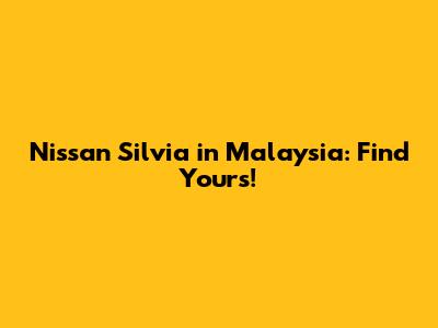 Nissan Silvia In Malaysia: Find Yours!