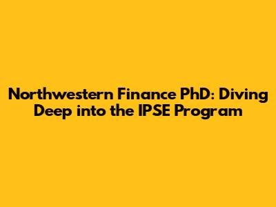 Northwestern Finance PhD: IPSE Program Details
