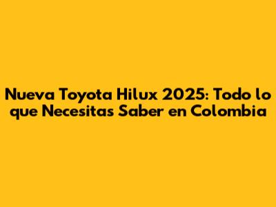 ¡Hey, amantes de las pick-ups! Si están buscando información sobre la nueva Toyota Hilux 2025 en Colombia, llegaron al lugar correcto. Prepárense porque vamos a sumergirnos en todo lo que esta icónica camioneta tiene para ofrecer: desde sus posibles novedades, precios estimados, hasta las versiones que podrÃan estar disponibles en el mercado colombiano. Asà que, pónganse cómodos, porque esta guÃa completa les dará toda la información que necesitan para estar al tanto de la Hilux 2025.