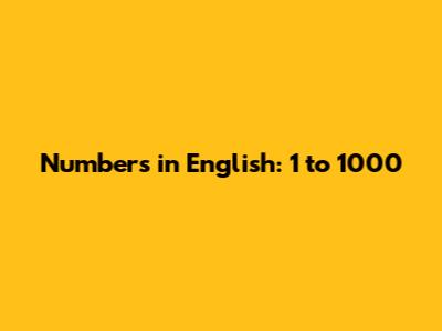 Numbers In English: 1 To 1000