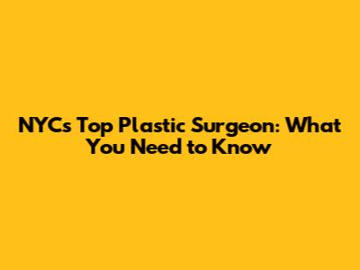 NYC's Top Plastic Surgeon: What You Need To Know