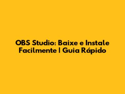 OBS Studio: Baixe E Instale Facilmente | Guia Rápido
