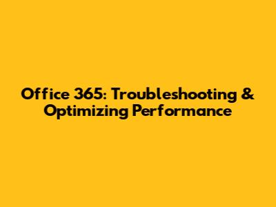 Office 365: Troubleshooting & Optimizing Performance
