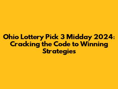 Ohio Pick 3 Midday: 2024 Winning Strategies