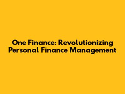 One Finance: Revolutionizing Personal Finance Management