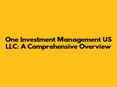 One Investment Management US LLC: A Comprehensive Overview